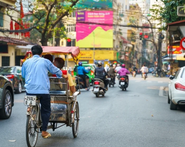 Daarna gaat de rit verder per traditionele fietsriksja – lokaal ‘cyclo’ genoemd – door het doolhof van smalle steegjes en levendige handel in de Oude Wijk. Deze historische buurt staat bekend om haar 36 straten, die oorspronkelijk zijn vernoemd naar de goederen die hier ooit werden verhandeld: bamboe, zijde, papier en tin. Veel van die straatnamen bestaan nog steeds en de sfeer ademt lokale charme: inwoners van Hanoi doen er hun boodschappen, kletsen met elkaar en scheppen dampende kommen pho op in hun straatkeukens.