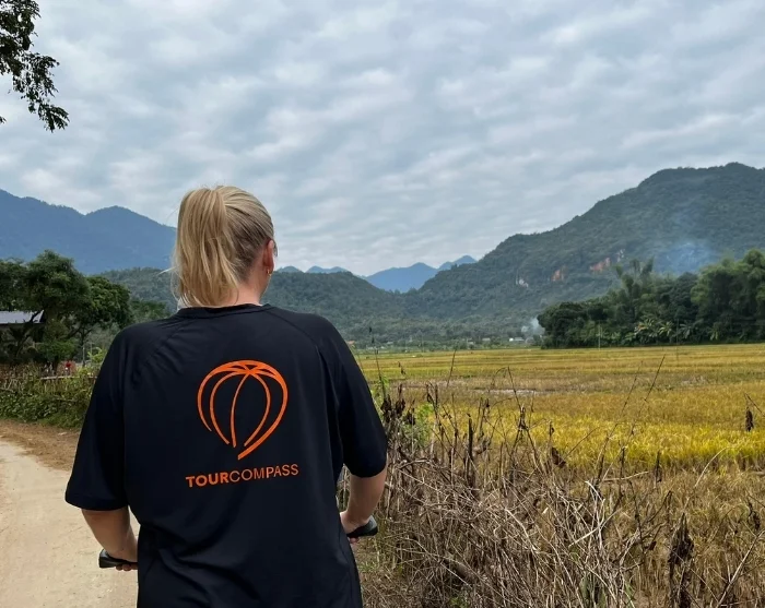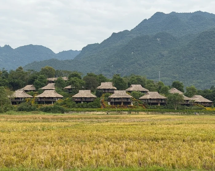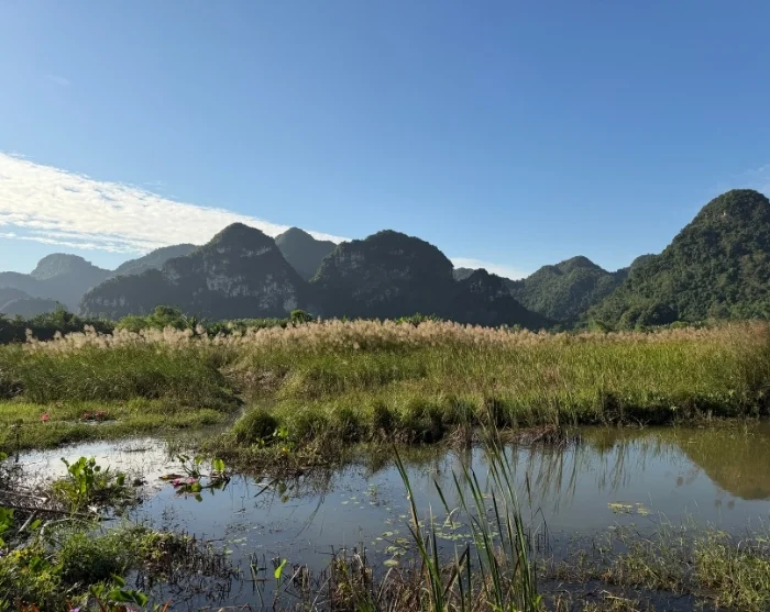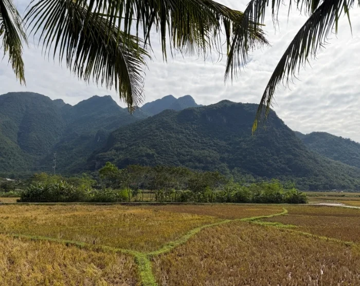 Bij aankomst ontvouwt de vallei zich met groene rijstvelden, imposante kalksteenbergen en kleine dorpjes waar etnische minderheden nog altijd volgens eeuwenoude tradities leven.