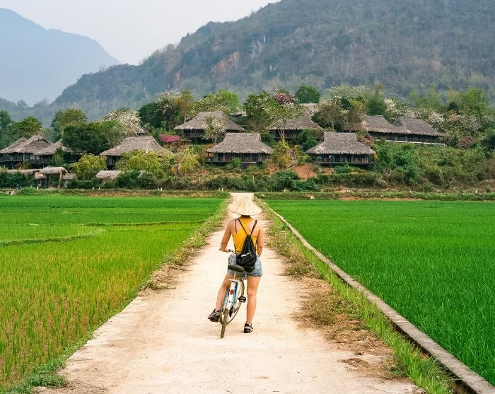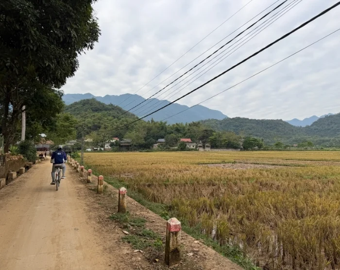 Vanuit Hanoi reist u naar de weelderige Mai Chau-vallei en fietst u tussen rijstvelden en authentieke dorpjes, omringd door smaragdgroene bergen.