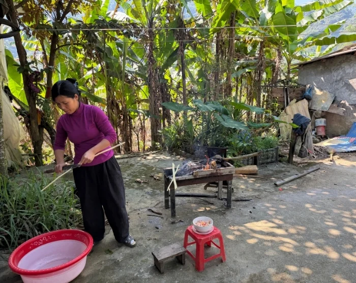 De tocht gaat verder naar een lokale familie in het dorp Mai Trung, waar u hartelijk bij hen thuis wordt ontvangen. Hier krijgt u een inkijkje in het leven op het platteland en doet u mee aan seizoensgebonden activiteiten zoals werken op de rijstvelden, tuinieren of het voeren van vissen en pluimvee. De activiteiten verschillen per seizoen en geven een authentiek beeld van het dagelijkse leven in de Vietnamese landbouw.