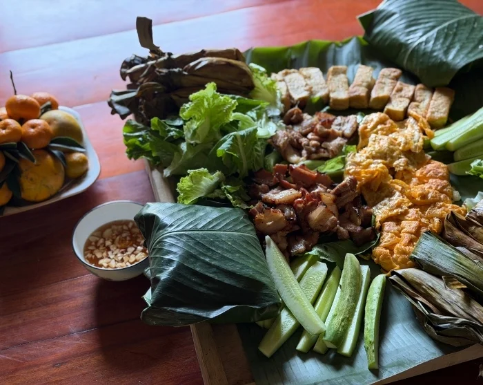 Na de boottocht bezoekt u een lokaal gezin, waar u samen met uw gastfamilie traditionele gerechten bereidt. De lunch wordt geserveerd aan een prachtig gedekte tafel, vol lokale specialiteiten om samen te delen – een authentieke kennismaking met de culinaire tradities van de regio. Er is ook tijd om met uw gastfamilie te praten en meer te leren over het dagelijks leven, de cultuur en de tradities van de Muong.