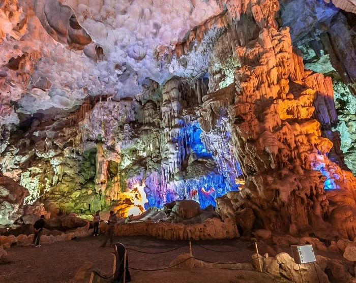De reis gaat verder naar de Sung Sot-grot, de grootste en meest indrukwekkende kalksteengrot in de Ha Long baai. Binnen wacht een betoverend ondergronds landschap van stalactieten en stalagmieten, gevormd in de loop van miljoenen jaren. Wij raden stevige schoenen met gesloten neus aan, zeker bij nat weer.