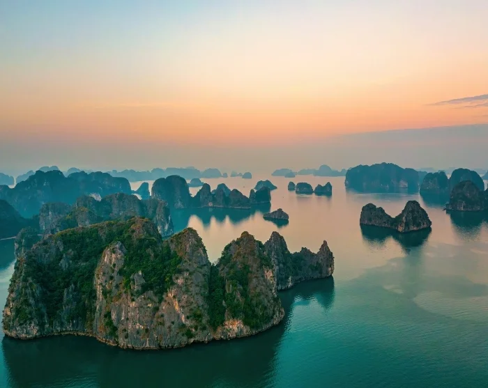 De Ha Long baai is een van de meest kenmerkende natuurlijke landschappen van Vietnam. Honderden weelderig begroeide kalkstenen rotseilanden rijzen steil uit zee omhoog, die in de loop van het jaar van kleur verandert: van diepblauw tot jadegroen. Op het grootste eiland, Cat Ba, liggen verschillende dorpen, terwijl enkele kleinere eilandjes kleine vissersgemeenschappen herbergen. Voor reizigers is de Ha Long baai vooral een natuurwonder van wereldklasse; voor Vietnamezen is het ook een plek die doordrenkt is van legenden over draken en dramatische verhalen. De baai beslaat circa 1.500 km² en werd in 1994 opgenomen op de UNESCO-werelderfgoedlijst.