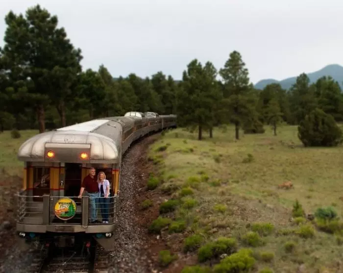 Ga mee op deze onvergetelijke dagexcursie van Williams naar de South Rim van de Grand Canyon en weer terug. Als u over deze historische spoorlijn uit 1901 door het prachtige en afwisselende landschap rijdt, waant zich in vervlogen tijden.