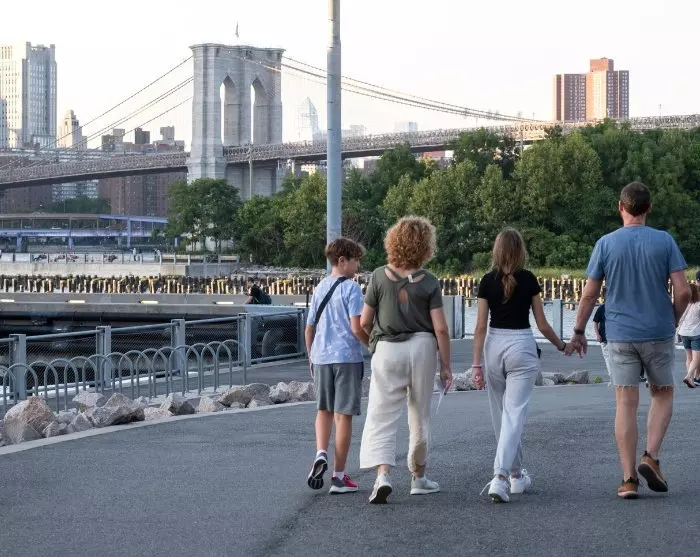 Vanaf het startpunt worden jij en je groep door je gids begeleid over de Brooklyn Bridge, terwijl je gids je vertelt over de fascinerende geschiedenis van de brug en met het fantastische uitzicht op Manhattan als achtergrond. Aan de andere kant van de brug bereik je de wijk DUMBO, waar je de waterkant kunt ervaren en de Brooklyn Bridge vanuit een andere hoek kunt bekijken. De wijk DUMBO staat bekend om de promenade langs East River en de charmante sfeer met veel ontwerpers, kunstenaars, speciaalzaken en geweldige eetgelegenheden. Uiteindelijk bereikt de wandeling Brooklyn Bridge Park, waarna je de omgeving op eigen gelegenheid verder kunt verkennen.