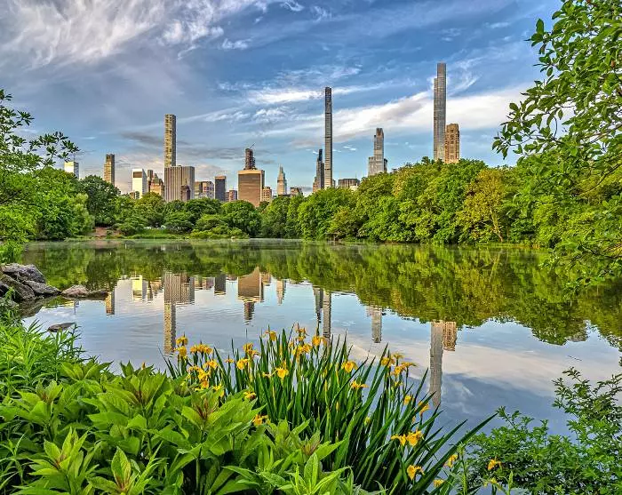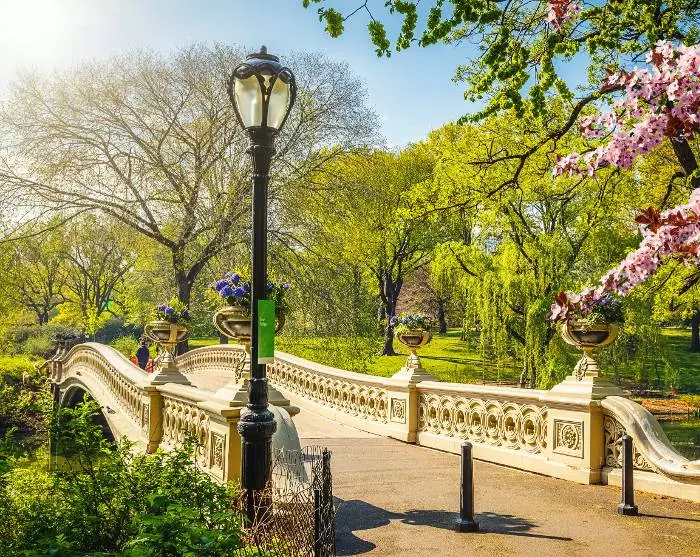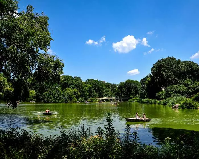 Je kunt ook een lunchpauze in Central Park overwegen – een bijna heilige oase midden in een van de grootste steden ter wereld. Hier ontmoet je lokale New Yorkers die aan het wandelen zijn, schoolgroepen die op excursie zijn, kunstenaars die de omgeving schilderen, terwijl anderen in de roeiboten van Central Park Boathouse varen. Het is ook hier in het park bij Strawberry Fields dat je het gedenkteken voor John Lennon vindt in de vorm van een prachtige mozaïeksteen met de naam ‘Imagine’.