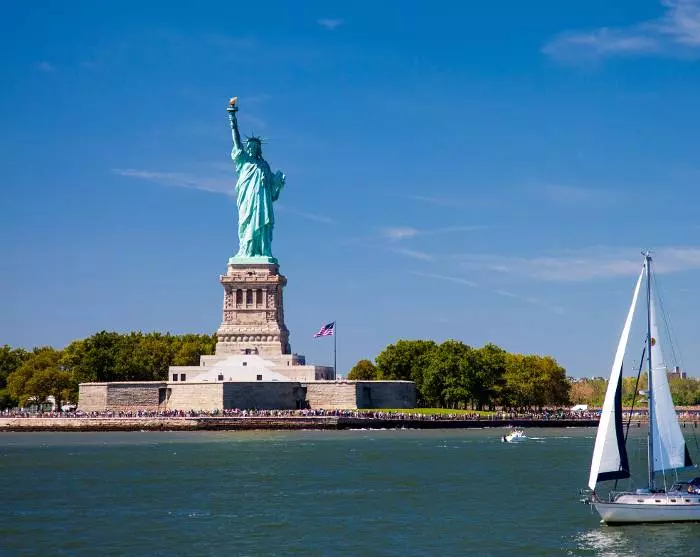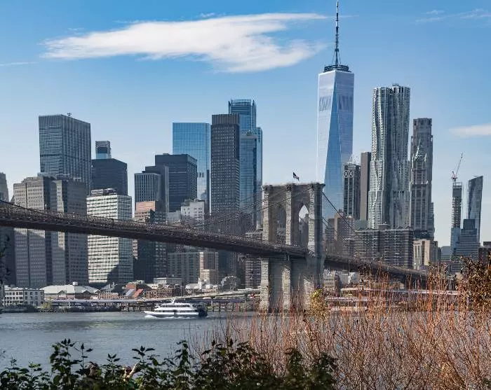 Ergens aan de horizon begin je een van de meest iconische monumenten van Amerika te zien: het Vrijheidsbeeld. Het standbeeld werd in 1885 door Frankrijk aan de Verenigde Staten geschonken ter ere van de alliantie van de twee landen tijdens de Amerikaanse Revolutie en om Amerika te erkennen als vrijheidsstrijdend land. Later werd het een symbool van vrijheid en hoop voor de nieuwe reizigers die over zee aankwamen. Vanaf het Vrijheidsbeeld gaat de rondvaart verder langs het One World Trade Center en onder de historische Brooklyn Bridge en Manhattan Bridge door. Vanaf hier heb je een prachtig uitzicht op de skyline van New York. Pas als je de wolkenkrabbers van een afstand ziet, kun je hun enorme omvang echt bevatten. De excursie eindigt bij het startpunt en nu je een overzicht hebt gevormd, zijn er misschien plaatsen die je aan land wilt bezoeken. Het is aan jou, want de rest van de dag heb je tot je beschikking.