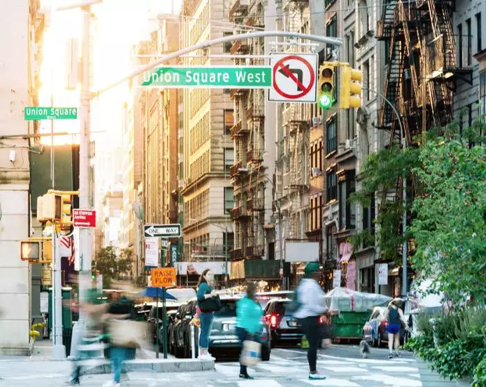 Je vertrekt uit Philadelphia vanaf hetzelfde treinstation als waar je aankwam*, en slechts 1,5 uur later kun je uitstappen op Penn Station en sta je midden in de levendige straten van New York.