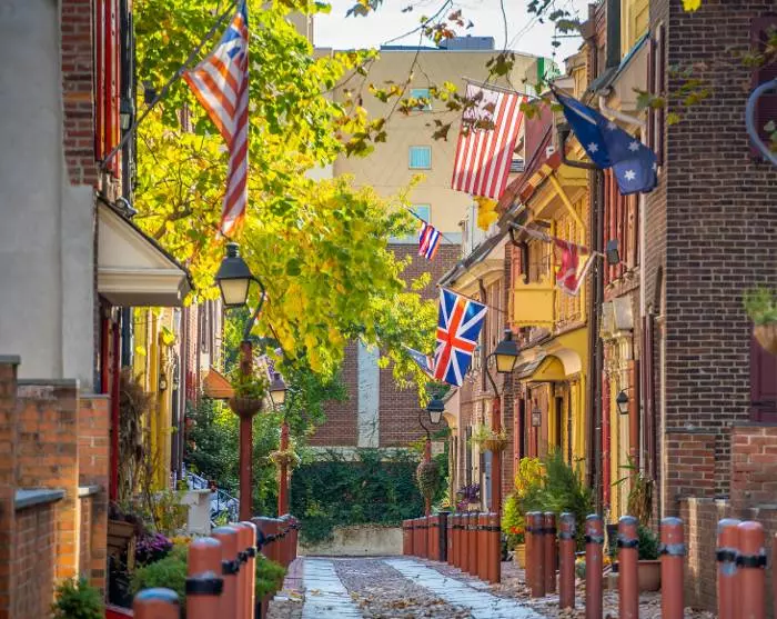 Philly’, zoals de stad door Amerikanen wordt genoemd, is de oorspronkelijke Amerikaanse hoofdstad en ademt geschiedenis en charme met geplaveide straten en rode bakstenen huizen in koloniale stijl. Je verblijft dicht bij de historische straten, die vol zitten met kleine winkeltjes, cafés en restaurants, en als je in Philly bent, mag je de plaatselijke beroemde sandwich niet overslaan: de Philly cheese steak sandwich.