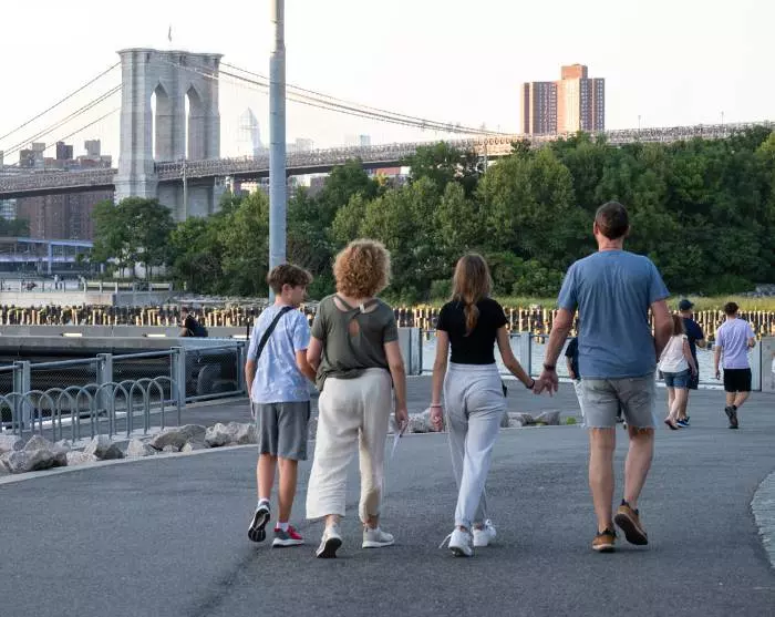 Het is een aanrader om de prachtige route naar Brooklyn te lopen of te fietsen via de beroemde brug der liefde, Brooklyn Bridge, en eventueel terug te keren via de Manhattan Bridge. Aan de Brooklyn-kant kun je genieten van een verfrissing met uitzicht over de stad vanuit de wijk DUMBO, die tussen de twee bruggen ligt.