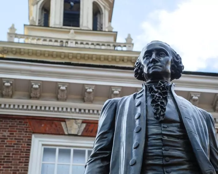 Er wordt gezegd dat de Amerikaanse vlag hier in Philadelphia is gemaakt, en in het Betsy Ross House kun je het verhaal lezen van Betsy die de eerste Amerikaanse vlag naaide, die later werd aangeboden aan de eerste president van de Verenigde Staten, George Washington.