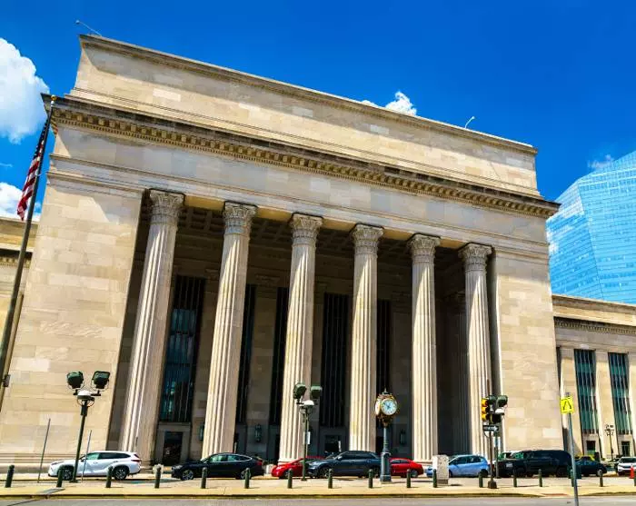 Neem een Uber of taxi naar Union Station in D.C., dat op slechts een paar kilometer van je hotel ligt. Zorg ervoor dat je op tijd bent voor vertrek – vanuit Washington D.C. niet later dan 30 minuten van tevoren (gegevens over ontmoetingstijd, plaats en vertrek staan op je voucher). De treinreis naar Philadelphia duurt iets minder dan twee uur, dus leun achterover in je stoel en kijk hoe het landschap onderweg aan je voorbij trekt.