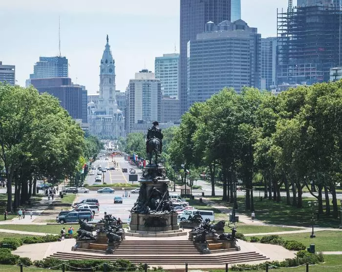 Bij aankomst in Philadelphia zul je ontdekken dat je midden in het centrum van de stad bent en op slechts een paar kilometer van je hotel. Het is aan jou of je de metro of Uber wilt gebruiken of gewoon naar het hotel wilt lopen. Als je voor het inchecken aankomt, kun je in het hotel je bagage opslaan terwijl je op je eigen tempo de stad kunt gaan verkennen.