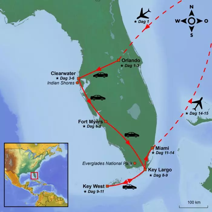 Vandaag verlaat je de westkust en ga je naar de oostkant van Florida. Ga op tijd op pad, zorg ervoor dat je voldoende brandstof en snacks hebt voor onderweg, en bereid je voor op een ochtend rijden naar het van de Everglades Safari park. Hier parkeert u de auto en maakt u zich klaar voor het volgende beschikbare vertrek in een moerasboot die u van het Everglades Safari Park door een deel van het Everglades National Park brengt. Zie details op je voucher.