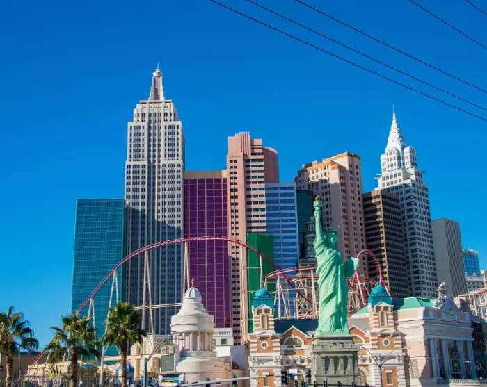Naarmate u Las Vegas nadert zal het woestijnstof plaatsmaken voor gigantische themahotels die zij aan zij liggen aan de bijna 7 km lange Las Vegas Boulevard – ook wel bekend als The Strip.