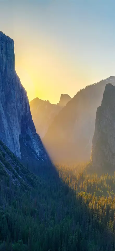 Op het laatste deel van de weg naar Yosemite Valley volgt u de bruisende Merced River, terwijl u uitzicht heeft op de door de grote gletsjer gevormde bergen, watervallen en weides.