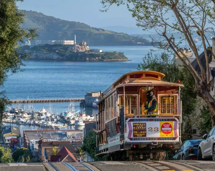 Vandaag kunt u zich te voet, met een taxi, of – als u wilt – met een van de beroemde historische kabeltrams verplaatsen. Deze trams brengen al sinds 1878 mensen moeiteloos de heuvels van San Francisco op en af. Kaartjes voor een enkele rit of een dagpas zijn verkrijgbaar bij de eindhaltes. Vooral met de iconische Hyde-Powell-lijn reist u eenvoudig tussen Union Square en het befaamde Fisherman’s Wharf. Wilt u San Francisco écht ervaren? Probeer dan een staanplek aan de zijkant van de tram te bemachtigen en voel de adrenalinekick als de tram de heuvels af zoeft.