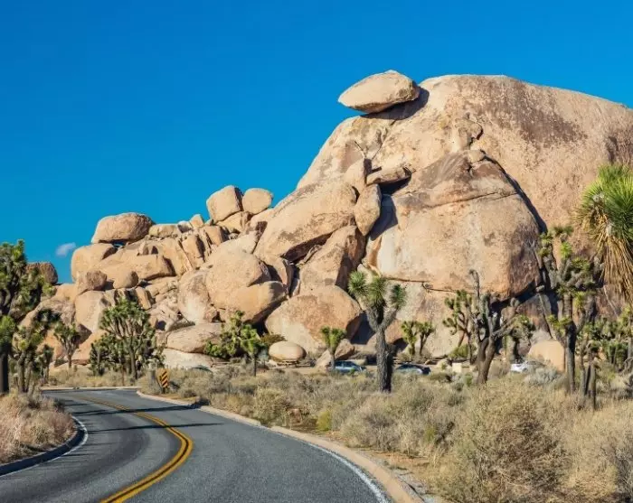 In Palm Springs rijdt u door de woestijnstad, waar palmbomen de straten sieren. De stad is een waar paradijs voor welgestelde Amerikanen die hier vakantiehuizen hebben. Elvis, Marilyn Monroe, Frank Sinatra en Dean Martin zijn maar een paar voorbeelden van beroemdheden die in deze stad een huis hadden. Hun huizen zijn nog steeds te zien (van buitenaf). Vanuit Palm Springs kunt u ervoor kiezen om uw weg te vervolgen naar het Joshua Tree National Park. Het nationale park biedt prachtige uitzichten op het woestijnlandschap dat zich uitstrekt tot aan de horizon. Het ruige landschap vormt een prachtig contrast met de groene cactussen en de blauwe lucht.