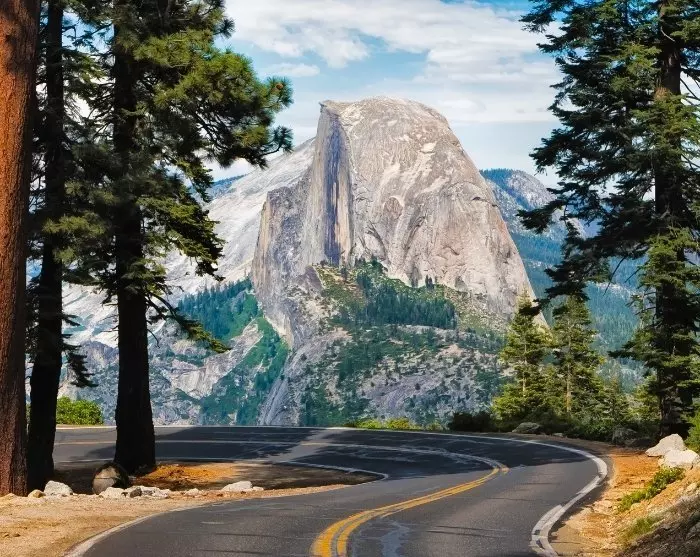 Als je het park nadert (via Arch Rock Entrance), ervaar je hoe het stadsleven geleidelijk wordt vervangen door kale landschappen en uiteindelijk bergen: de Sierra Nevada Mountains, waar Yosemite ligt. Het laatste uur rijden naar Yosemite Valley zelf is onbeschrijflijk mooi met verticale rotswanden, sparrenbomen en de turbulente Merced River, die de hele weg met je meeloopt.
