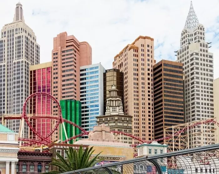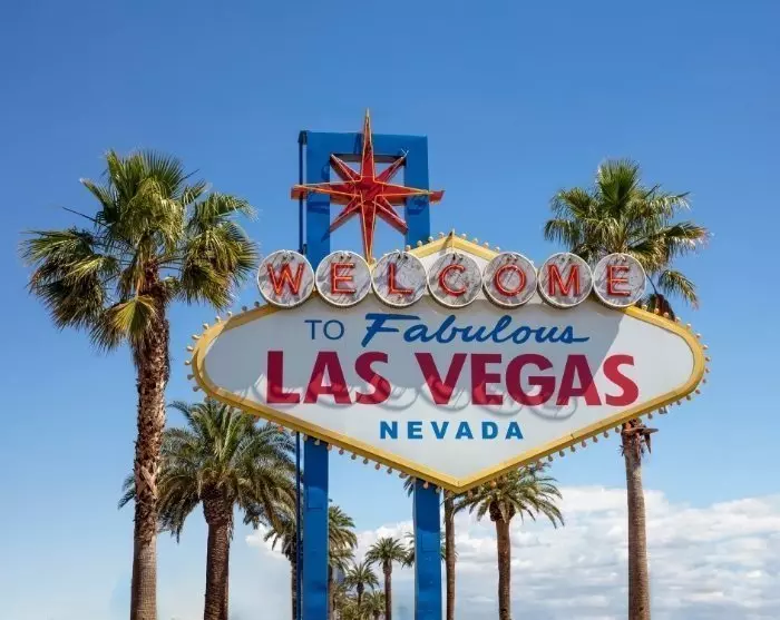 Na nog een paar uur rijden vanuit Barstow kun je plotseling Las Vegas in de verte voelen. Als je de stad nadert, kun je aan de horizon eigenzinnige gebouwen zien oprijzen. Dit zijn de beroemde themahotels die naast elkaar staan langs de bijna 7 km lange Las Vegas Blvd. – ook wel The Strip genoemd.