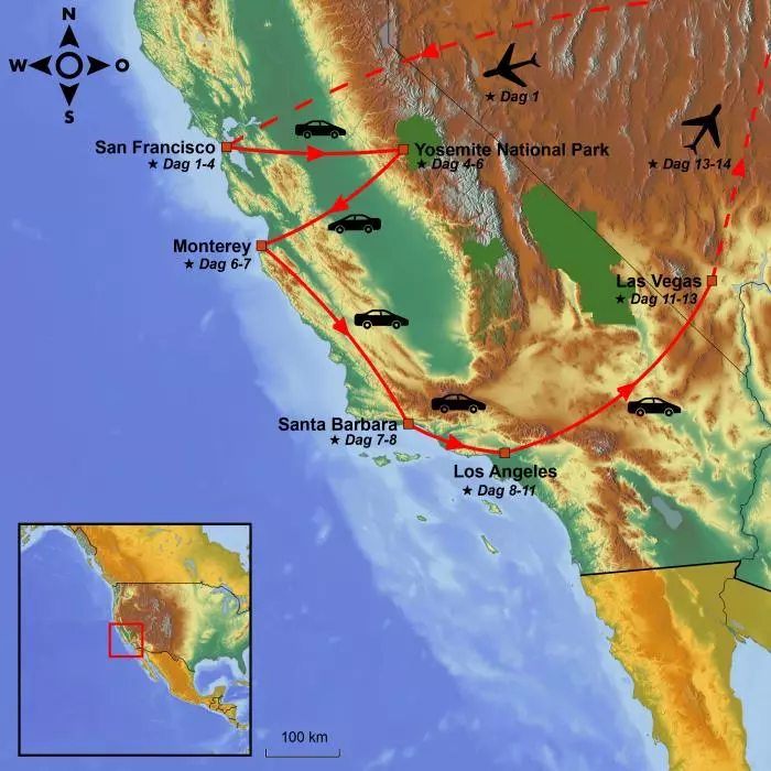 Droom je van een vrij kort self-drive avontuur in het westen van de Verenigde Staten, waarbij je onderweg veel van de beroemde bezienswaardigheden zult zien? En wil je het contrast voelen tussen de Amerikaanse kuststeden en de woestijn? Dan is deze reis, boordevol hoogtepunten van San Francisco in Californië tot Las Vegas in Nevada, de juiste keuze voor jou.