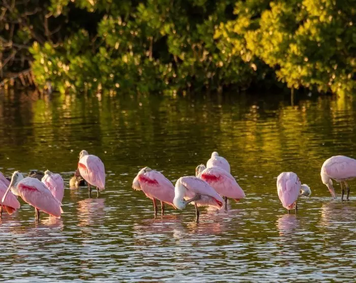 Op Sanibel kun je kajakken in Tarpon Bay, fietsen huren en de kleine baaien verkennen. Je kunt ook bijzondere zeeschelpen vinden op Bowman’s Beach (maar vergeet niet dat je de schelpen niet mag meenemen). Op Sanibel vind je ook het beroemde J.N. “Ding” Darling National Wildlife Refuge, een van de grootste mangrove ecosystemen in de VS. In het reservaat leven meer dan 245 verschillende vogelsoorten, waaronder de prachtige rode lepelaar, die elk jaar veel vogelliefhebbers aantrekt.