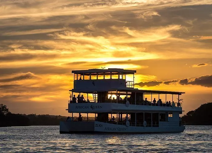 U wordt hier door een andere boot opgepikt om een boottocht bij zonsondergang te maken. Vanaf ‘The African Queen’ of ‘The African Princess’ – klassieke catamarans met een houten dek en een sfeer die u naar de koloniale tijd terugvoert – kunt u van de ondergaande zon genieten.