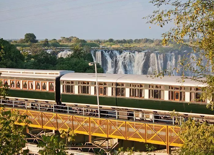 Beide treinen vertrekken einde van de middag. Geniet van een welkomstdrankje in de lounge van de trein, terwijl u in rustig tempo richting Victoria Falls Bridge rijdt.