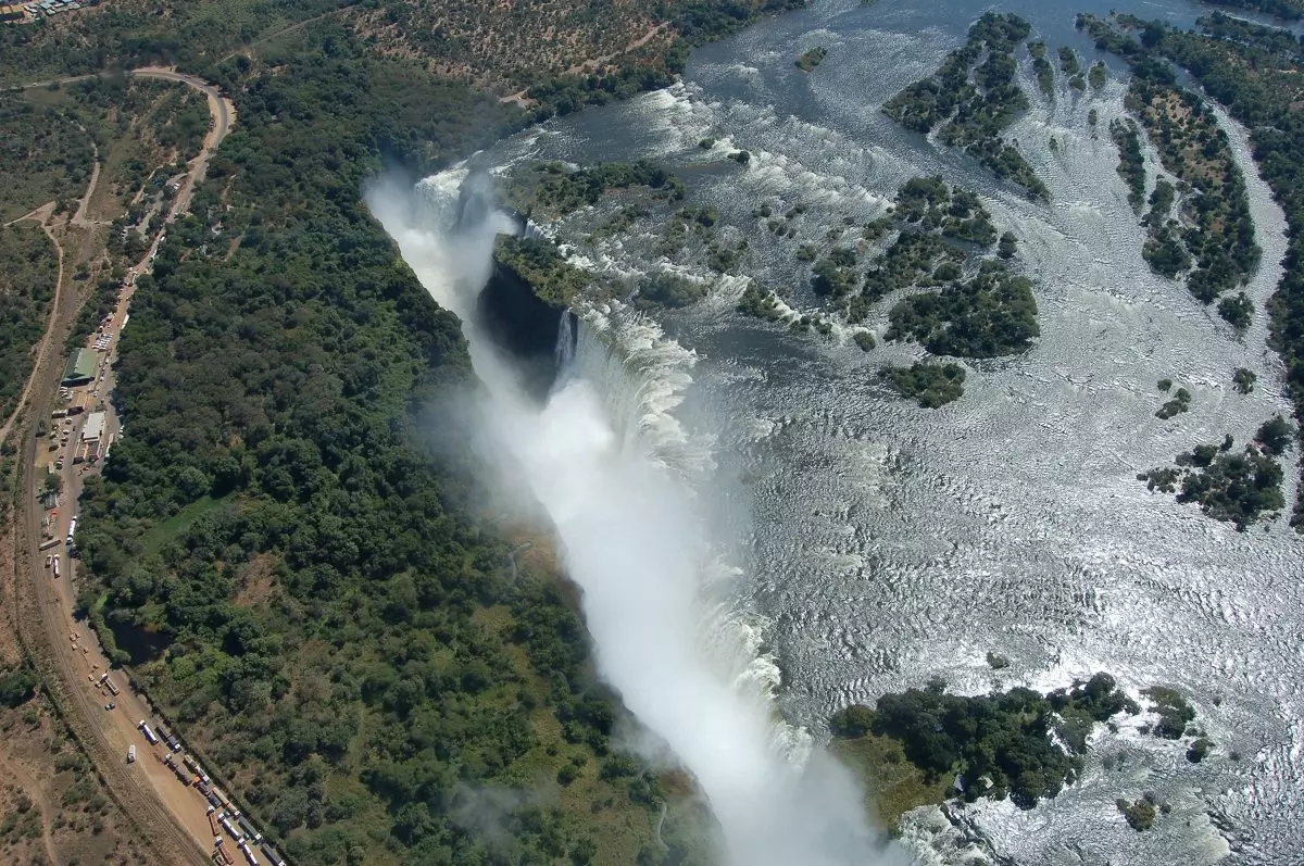 De waterval strekt zich uit over een breedte van 1,7 km en elke seconde stort er 1.000 kubieke meter in de ca. 100 meter lager gelegen kloven. En dat is nog niet alles. Ook de waternevel is in beweging en reikt tot honderden meters boven de watervallen. Soms lijkt het wel rook. De waterval wordt door de lokale bewoners ‘Mosi-oa-Tunya’ genoemd, dat ‘donderende mist’ betekent.
