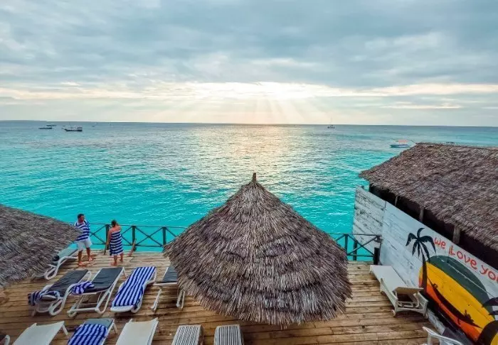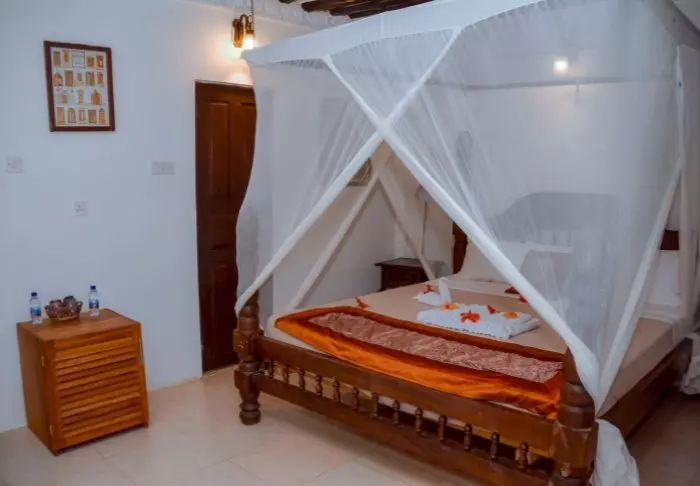 Het hotel in toeristenklasse Langi Langi Beach Bungalows ligt in Nungwi aan de noordkust van Zanzibar, aan de Indische Oceaan met turquoise water en witte stranden. U kunt hier dag en nacht zwemmen, omdat er geen eb en vloed is.