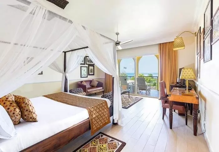 De stijl van het hotel is een combinatie van het Afrikaanse karakter van Zanzibar en de Arabische geschiedenis van het eiland. De kamers zijn elk 45 m² groot en hebben elk een balkon of terras van 12 m². Vanaf hier heeft u een fenomenaal uitzicht op de tuin en de Indische Oceaan. De kamers zijn modern ingericht en hebben een Afrikaans tintje en warme aardekleuren. Alle kamers hebben een hemelbed en zijn voorzien van muggennet, airconditioning, plafondventilator, telefoon, tv, wifi, minibar, kluisje, cd/dvd-speler en thee- en koffiefaciliteiten.