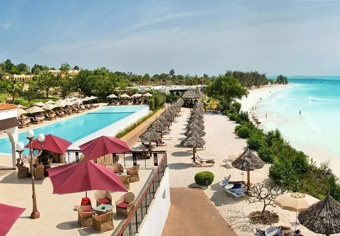 Overdag kunt u door de weelderige tuin wandelen, een verfrissende duik in het zwembad nemen, uzelf in de spa-ruimte verwennen, in het heldere water zwemmen of gaan duiken en de beroemde, kleurrijke onderzeese wereld van Zanzibar verkennen.