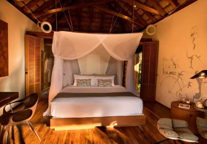 Alle bungalows zijn ingericht in moderne Afrikaanse stijl, met nadruk op duurzaamheid. Hier vindt u alles wat u hartje begeert: uw eigen terras, dat groot is en goed gemeubileerd, een binnen- en buitenbad, thee- en koffiefaciliteiten, gratis wifi, airconditioning, flatscreen-tv, enz., en bovendien is de sfeer hier heel ontspannen en gastvrij.