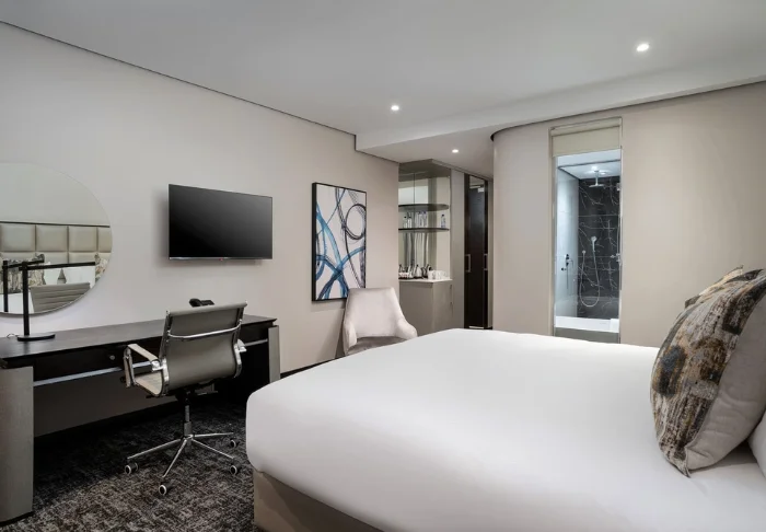 Het hotel heeft 173 kamers, alle hebben grote ramen van vloer tot plafond en uitzicht op de Indische Oceaan. De kamers zijn modern ingericht in lichte en vriendelijke kleuren. De badkamer is geïntegreerd in de hotelkamer. Alle kamers zijn voorzien van gratis wifi, koelkast, kluisje en thee- en koffiefaciliteiten.