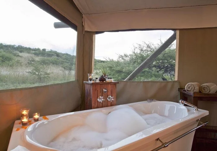 De tenten zijn zowel modern als klassiek ingericht. Er is voor de kleuren bruin en beige gekozen, dus de ‘klassieke’ safarikleuren. De constructie van de tenten bestaat uit steen, glas, hout en canvas. Dit geeft de lodge zowel een moderne als klassieke uitstraling.