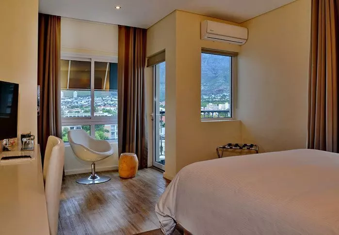 Het hotel is centraal gelegen met goede restaurants op loopafstand – maar is zo gebouwd dat het een hele kleine oase op zich vormt. In het midden van het hotel ligt een binnentuin met zwembad, terras, ligstoelen, café – en dus het prachtige uitzicht op de berg, het herkenningspunt van de stad.