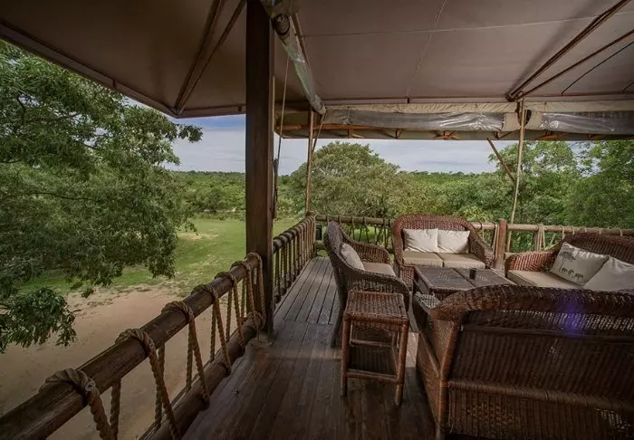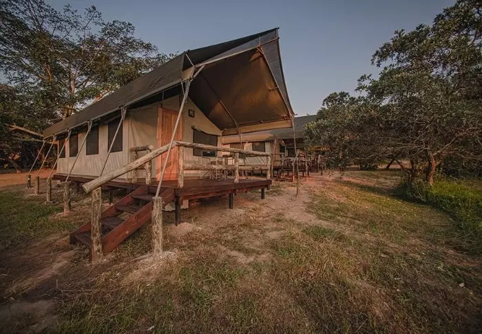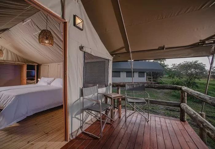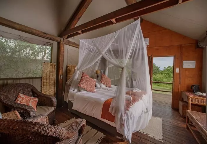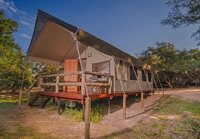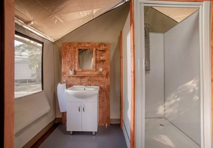 Hier verblijft u in mooie, ruime canvastenten die op platformen boven de grond staan. De tenten zijn voorzien van moderne gemakken, zoals een houten vloer, elektriciteit, airconditioning, goede toilet- en badkamerfaciliteiten en apparaten om thee of koffie te zetten. Dankzij de wanden van canvas kunt u nog steeds de natuur net buiten de tent horen en ruiken! Er zijn tenten met een tweepersoonsbed en tenten die speciaal zijn ingericht voor gezinnen. Alle tenten hebben een eigen veranda.