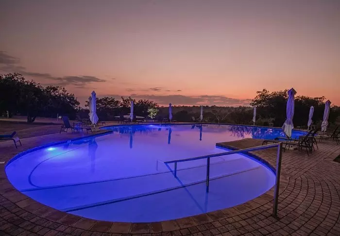 Het kamp ligt in een privédeel in het Krugerpark en vanuit het zwembad hebt u een schitterend uitzicht op het nationale park. In de rivier grenzend aan het grote grasveld is vaak een kudde nijlpaarden te vinden. Er zijn bankjes (en hekken!) neergezet, zodat u naar hun gesnuif en gespetter in het water kunt luisteren.