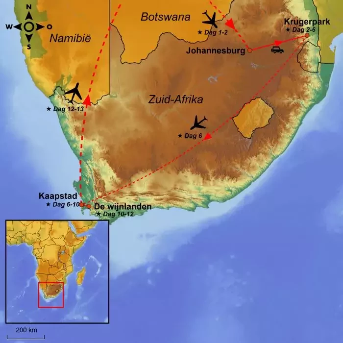 Vandaag vertrekt u met het vliegtuig vanuit Europa naar Johannesburg met tussenlanding(en) onderweg.
