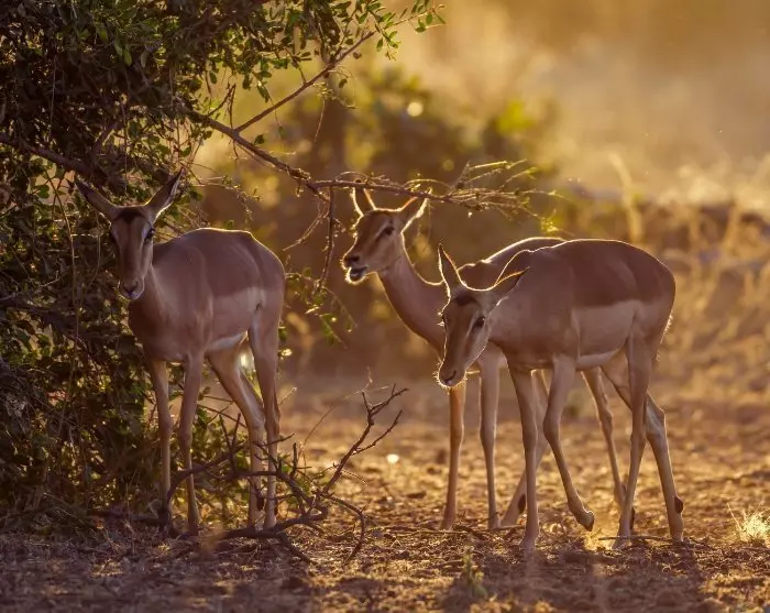 Giraffes en zebra’s zijn hier natuurlijk ook in grote aantallen aanwezig, en het park heeft ook veel verschillende vogelsoorten. Neem gerust een verrekijker mee, zodat je de gids kunt helpen om naar de dieren uit te kijken.