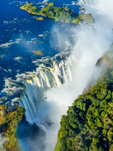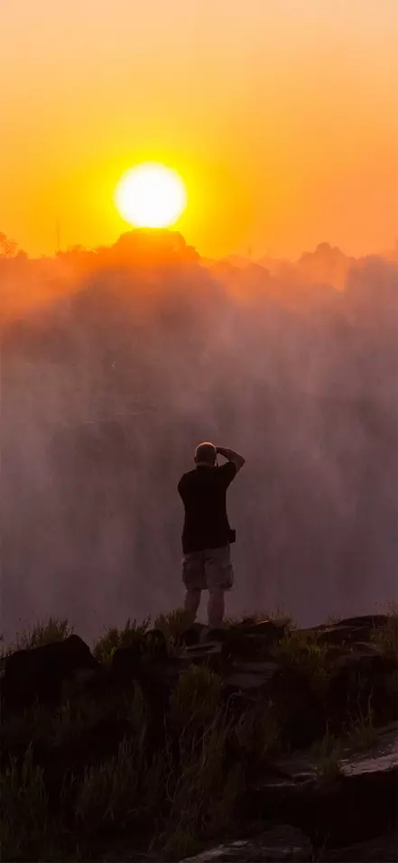 Vanuit de lucht kunt u het geluk hebben een glimp van een van de grootste watervallen ter wereld op te vangen. Het lijkt wel een wolk die vanaf de grond opstijgt. En die vergelijking gaat aardig op. Het water van watervallen wordt vaak wel honderden meters de lucht in gespoten. Voordat de reis verder gaat naar Botswana is er volop mogelijkheid het gebied rondom de Victoriawatervallen te verkennen.